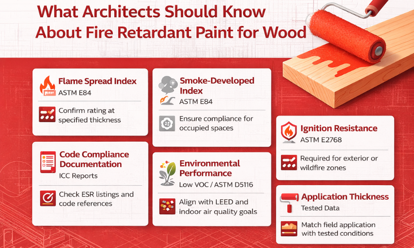 Fire retardant paint for wood lets architects use exposed wood while maintaining fire safety. These coatings are tested in accordance with ASTM standards, ICC evaluations, and local building codes. They help wood meet fire performance requirements for both interior and exterior applications. With proper selection and verification, architects can balance design, occupant safety, and code compliance.